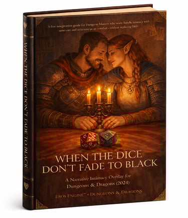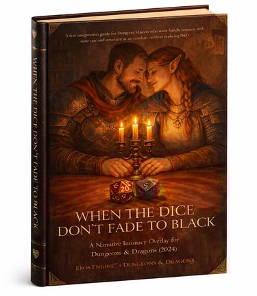 When the Dice Don’t Fade to Black is a free, DM-facing integration guide that shows how to handle intimacy with the same care, structure, and narrative weight as combat—without replacing Dungeons & Dragons.